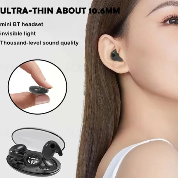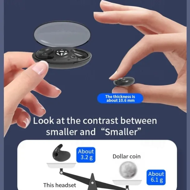【Invisible design and ergonomics】Invisible earplugs are designed according to the shape of the ear, very mini design style, very lightweight, 10.6mm thick, fit firmly with the ear hook, suitable for long-term wear, will not cause discomfort to the ear.