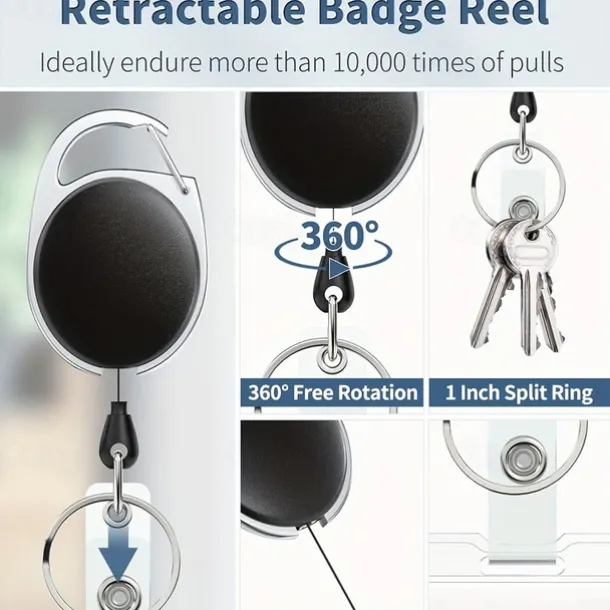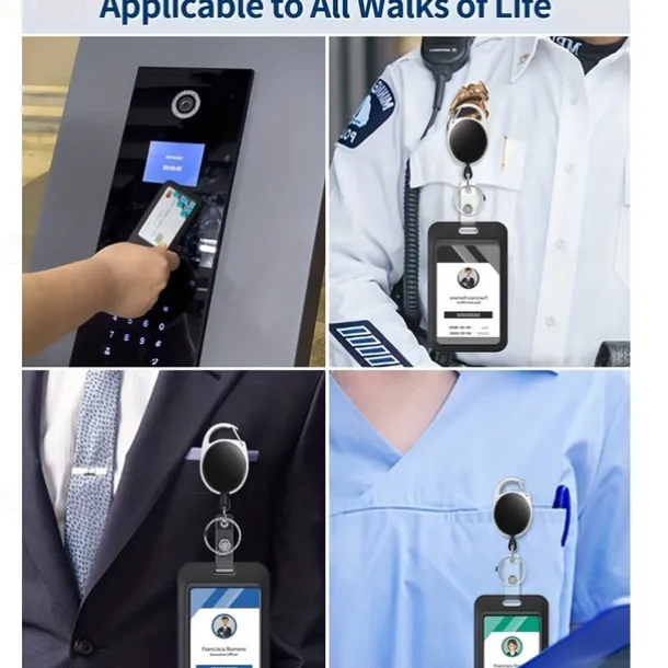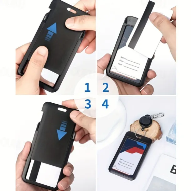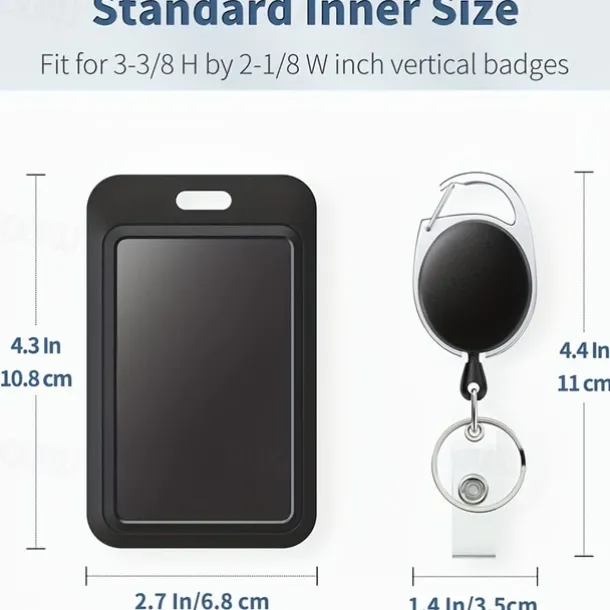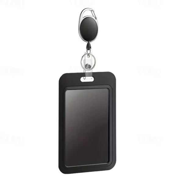 Sliding Badge Holder Hard Black Vertical Plastic Card Case Protector With Retractable Badge Reel Carabiner For Office School ID Credit Proximity Key Card Drivers License And Pass, Back to School Gift