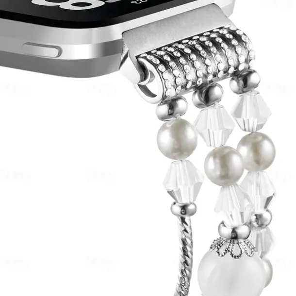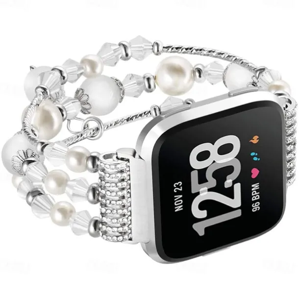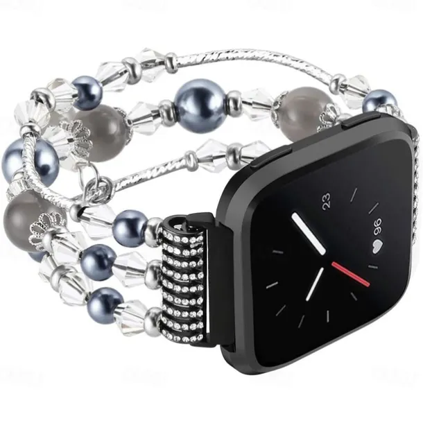 Smart Watch Band Compatible with Fitbit Versa 2 / Versa Lite / Versa SE / Versa Alloy Beaded Smartwatch Strap Bling Diamond Beaded Women Men Jewelry Bracelet Replacement Wristband