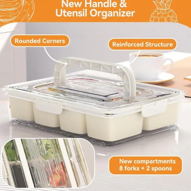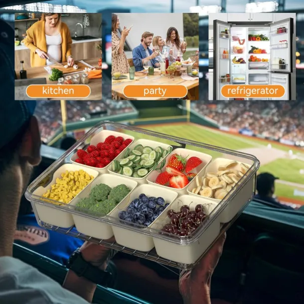 Snackle Box Container Divided Serving Tray with Lid, Portable Snack Platters Organizer, Charcuterie Container with 8 Compartments Food Storage Containers, Keep Your Candy, Chips Fresh.