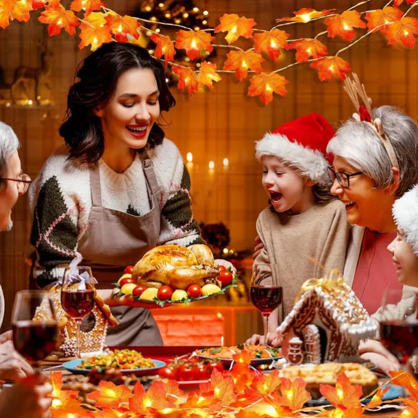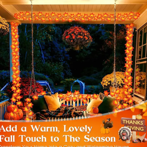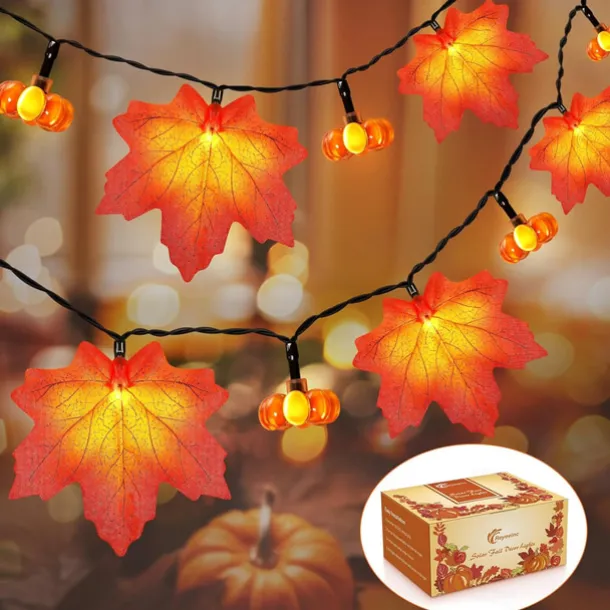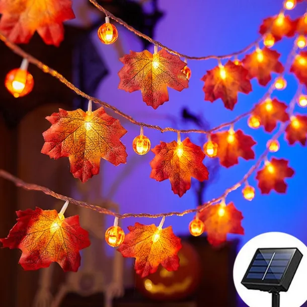 Solar 3D Pumpkin Maple Leaf String Lights 6.5m 30LED Outdoor Waterproof Garden Light Autumn Thanksgiving Christmas Wedding Party Holiday Yard Home Balcony Decoration