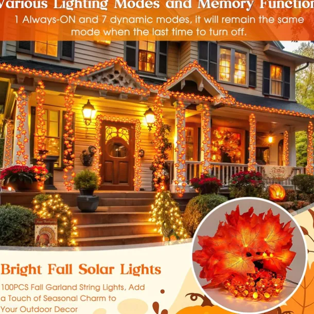 LED Beads Quantity: 30, Light Color: Warm White, Power Supply: Solar Energy, Type: String Lights, Style: Artificial Plant Lights, Holiday Lights, Features: Patio, Wedding, Waterproof, Holiday, Solar, Quantity: 1PC, Voltage (V): Solar Powered, Initial Lumens (lm): 400, Length: 6.5m, Mode: 8 Modes: (1.Combination 2.Wave 3.Sequential 4.Glow 5.Flash 6.Slow Fade 7.Twinkle 8.Continuous), CRI: >80, LED Type: EL, Batteries Included: Yes, IP Rating: IP65, Occasion: Patio, Garden, Fence, Bedroom, Stairs / Corridor, Window / Curtain / Wall, Indoor, Outdoor, Party / Banquet, Wedding, Balcony / Terrace, Courtyard, Lawn / Shrub, Suitable Rooms: Indoor, Outdoor, Shape: Pumpkin, Control Mode: Button, Light Control,