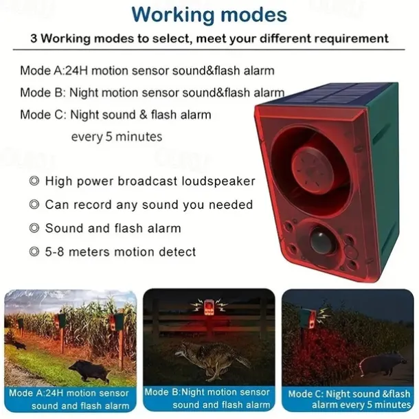 Solar Alarm Human Infrared Sensor Light Solar Remote Control Alarm Light anti-theft Animal Drive Warning Device