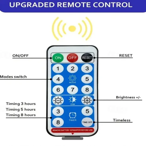 LED Beads Quantity:                                                                    600,                                                                                                Light Color:                                                                    Warm White,                                                                        White,                                                                                                Power Supply:                                                                    Solar Energy,                                                                                                Type:                                                                    Flexible LED Light Strips,                                                                        String Lights,                                                                                                Style:                                                                    Creative String Lights,                                                                        Firework / Starburst Lights,                                                                                                Features:                                                                    Wedding,                                                                        Outdoor,                                                                        Solar,                                                                                                Quantity:                                                                    1 set,                                                                                                Voltage (V):                                                                    Solar Powered,                                                                                                Length:                                                                    2m,                                                                                                Mode:                                                                    8 Modes: (1.Combination 2.Wave 3.Sequential 4.Glow 5.Flash 6.Slow Fade 7.Twinkle 8.Continuous),                                                                                                LED Type:                                                                    EL,                                                                                                Batteries Included:                                                                    Yes,                                                                                                IP Rating:                                                                    IP65,                                                                                                Control Mode:                                                                    Remote Control,                                                                                                Occasion:                                                                    Lawn / Shrub,                                                                        Patio,                                                                        Courtyard,                                                                        Wedding,                                                                        Party / Banquet,                                                                        Outdoor,                                                                        Window / Curtain / Wall,                                                                        Fence,                                                                        Garden,