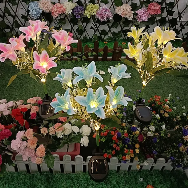 Solar Lily Outdoor Simulation Flower Lamp LED Artificial Flower Floor Insertion Lamp Garden and Courtyard Decorative Lights Holiday Party Decorative Lights