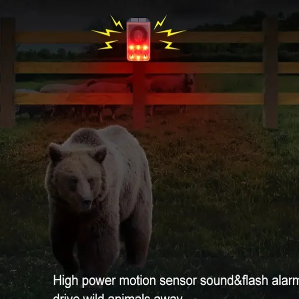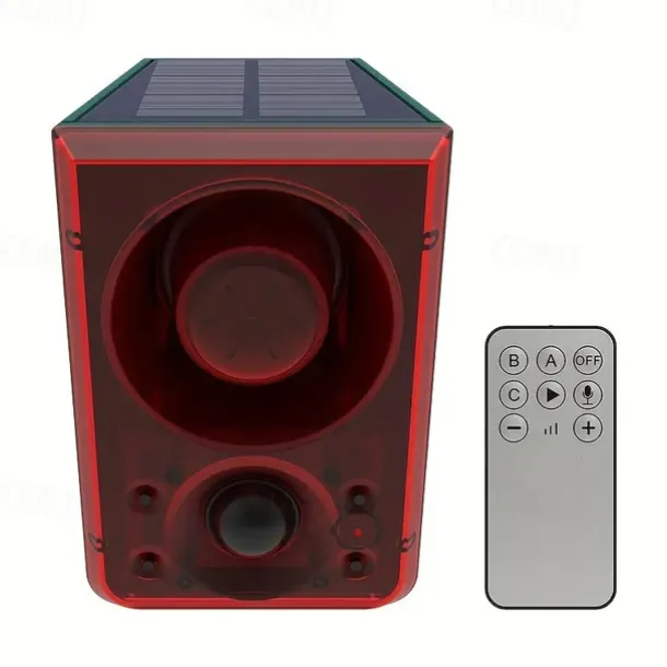 Solar Motion Sensor Alarm with Dog Barking & Gunshot Sound – 130dB Siren Security System with Remote Controller for Home, Farm, Yard, Chicken Coop, Villa
