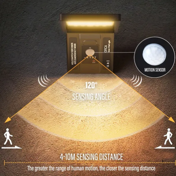 Solar Wall Lights Outdoor IP65 Waterproof with Remote Control Motion Sensor Street Light for Courtyard Garage Garden Corridor