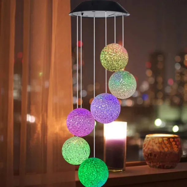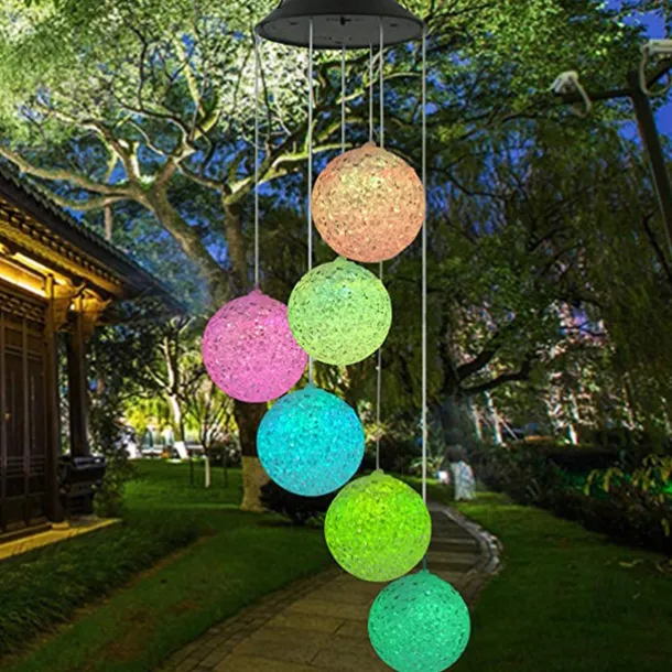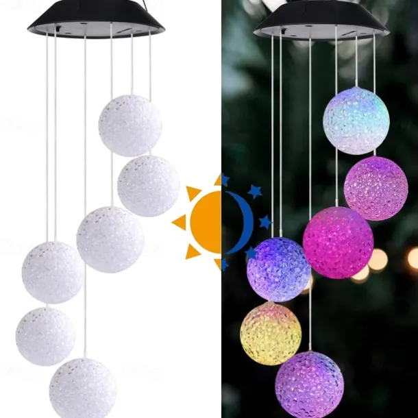 Solar Wind Chime Light Outdoor Lights Waterproof Colorful LED Ball Light Outdoor Hanging Lamp Balcony Garden Patio Room Decoration IP65 LED Solar Garden Light