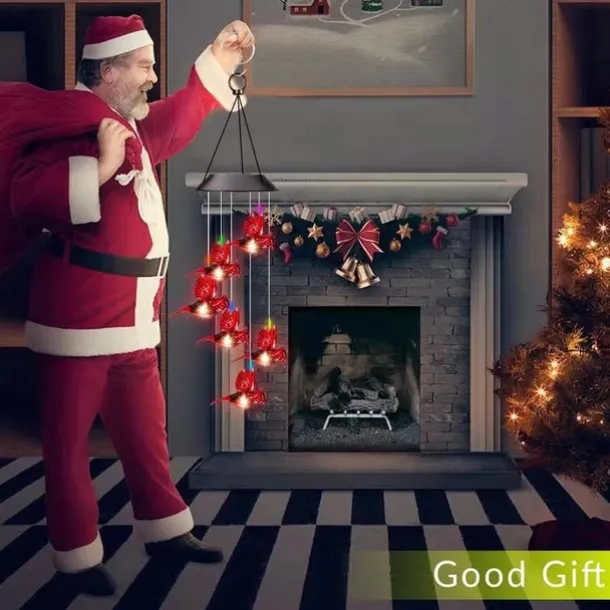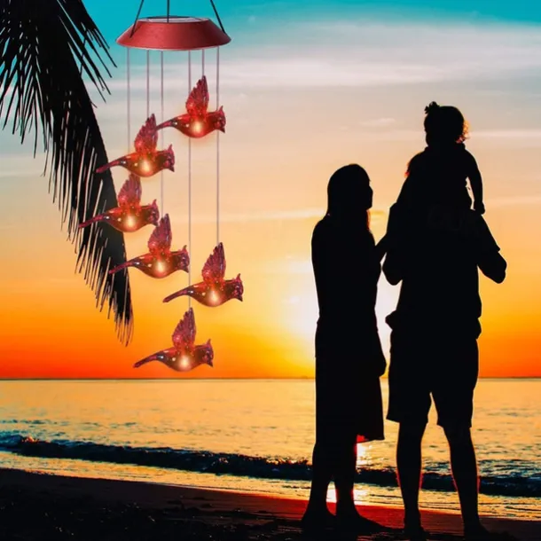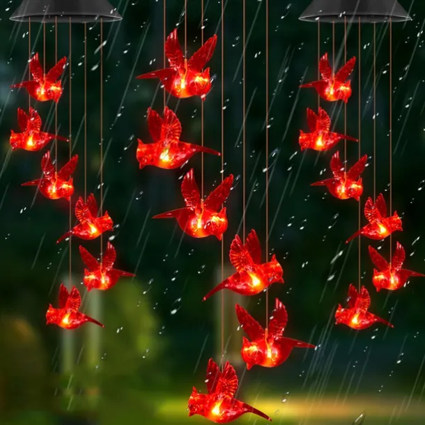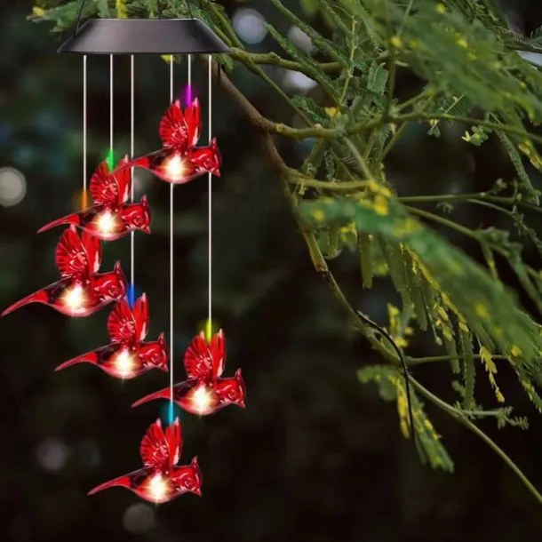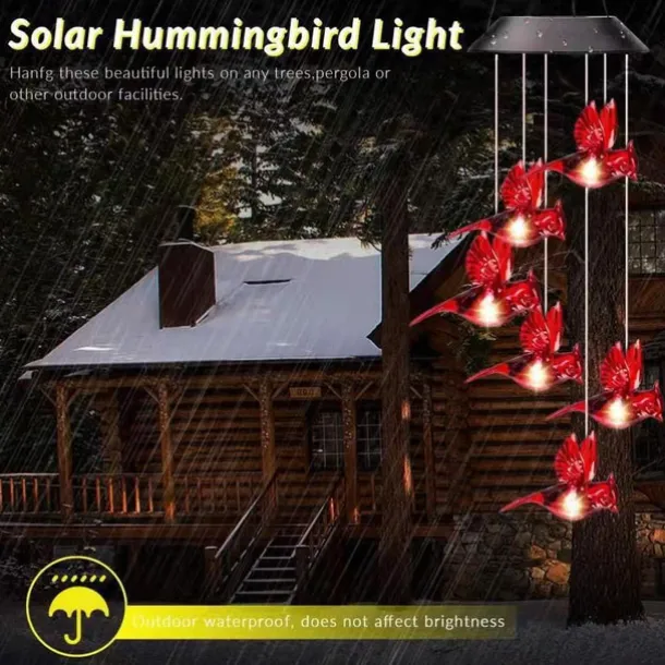 Solar Wind Chimes Red Bird Lights Outdoor Light LED Hanging Light Villa Courtyard Balcony Solar Wind Chimes Lights Christmas Holiday Decoration