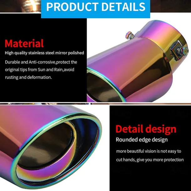 Stainless Steel Car Exhaust Tip – Universal Chrome-Plated Tailpipe, Car Exhaust Pipe Modification, Durable Steel Finish