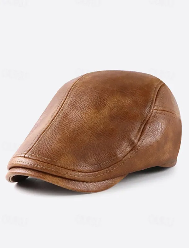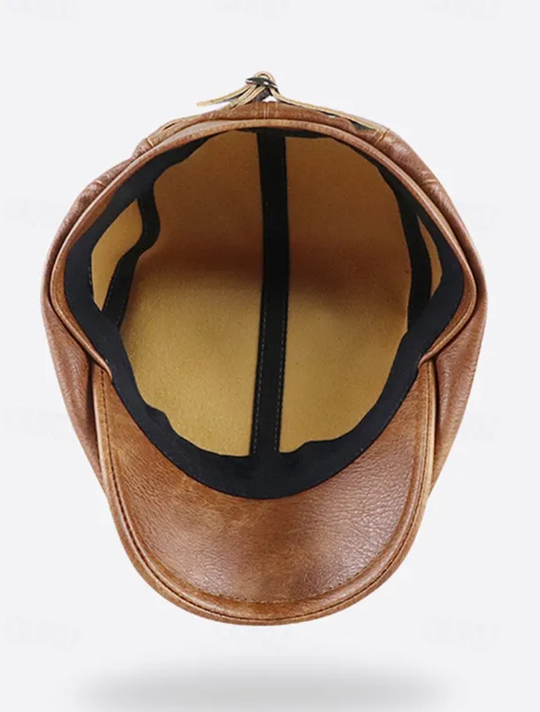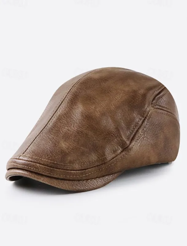 Stylish Brown Faux Leather Flat Cap with Vintage Finish | Perfect for Casual and Dressy Occasions