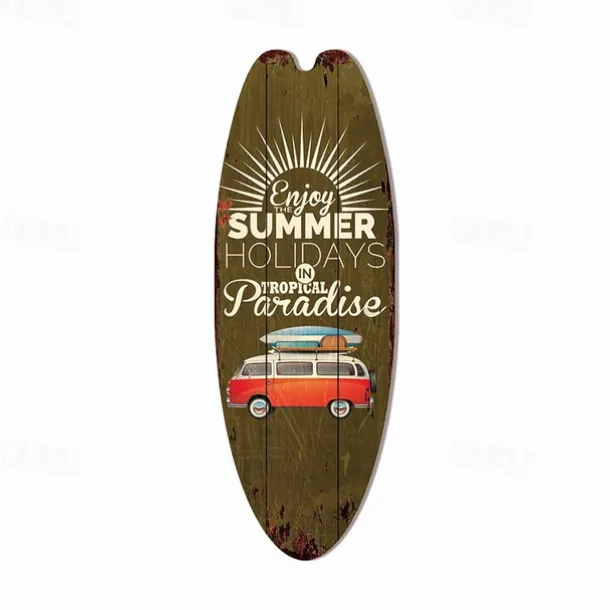 Summer Beach Ocean Theme Leisure Decoration Surfboard Wood Plaque Bar Home Wall Vintage Decoration Wood Plaque