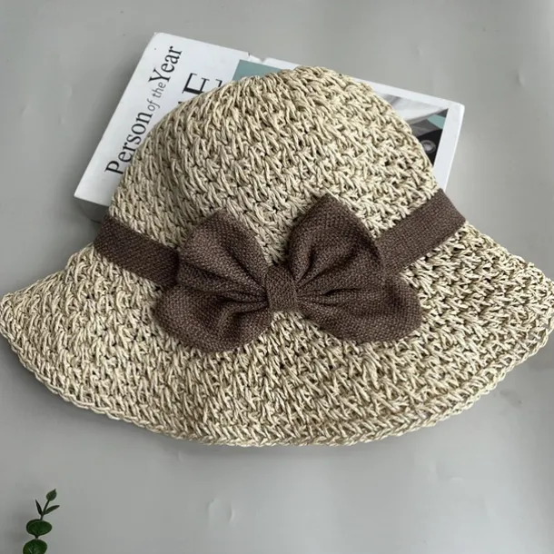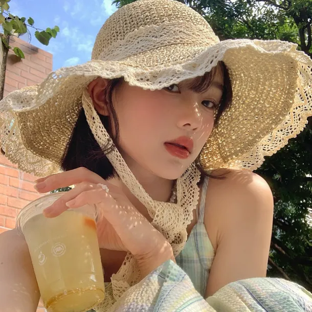 Summer Elegant Crochet Straw Hat with Ruffle One Size Sunshade