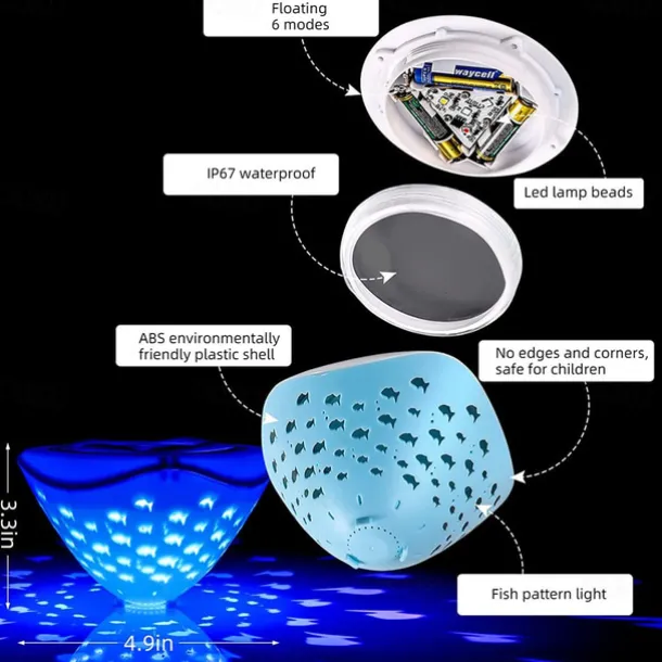 Swimming Floating Pool Lights Fish Pattern Color Changing Underwater Pool Light That Float 4 Colors 2 Modes Glow Hot Bath Tub Kids Toy LED Light Up Decor