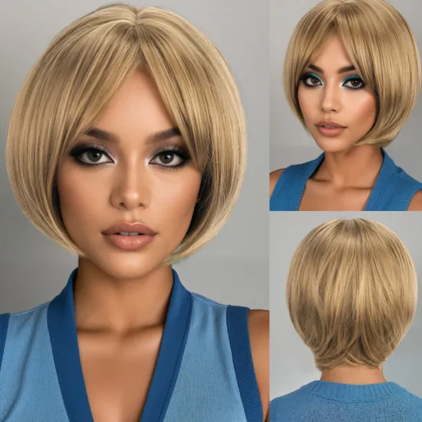 Synthetic Wig Wavy kinky Straight Asymmetrical Deep Parting Machine Made Wig 12 inch A1 Synthetic Hair Women’s Classic Comfortable Color Gradient Multi-color