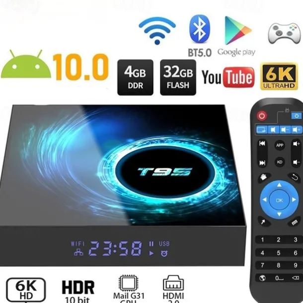 T95 Smart Tv Box Android 10 Support 6K 30FPS YouTube Google Play Google Voice Assistant LEMFO 2.4g & 5g Wifi Bluetooth 6k 16g 32gb 64gb 4k Quad Core Set-Top Box Media Player
