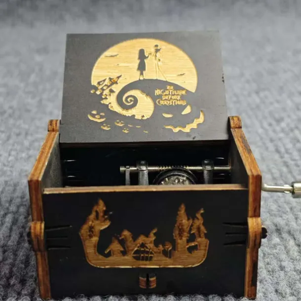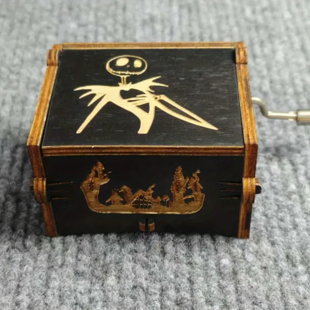The Nightmare Before Christmas Hand-Cranked Vintage Music Box with Holly Wood Automatic Wind-Up Eight-Tone Melody – ‘This is Halloween’ Theme, Perfect Holiday & Birthday Gift for Fun