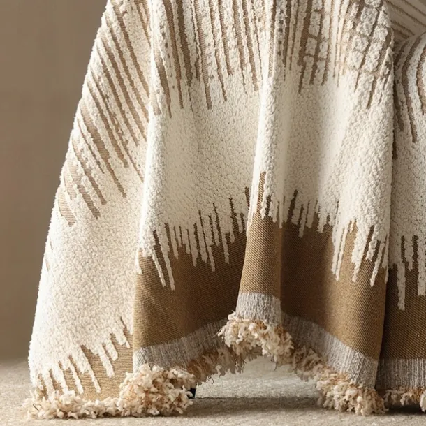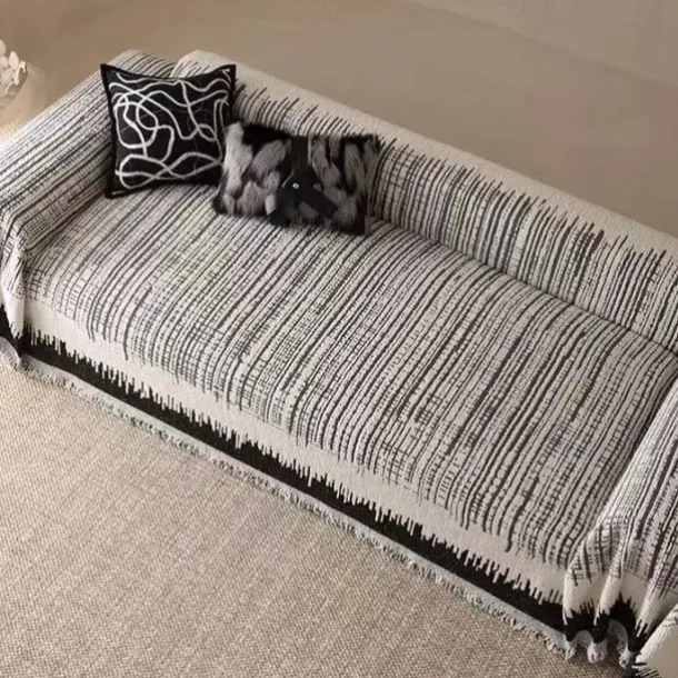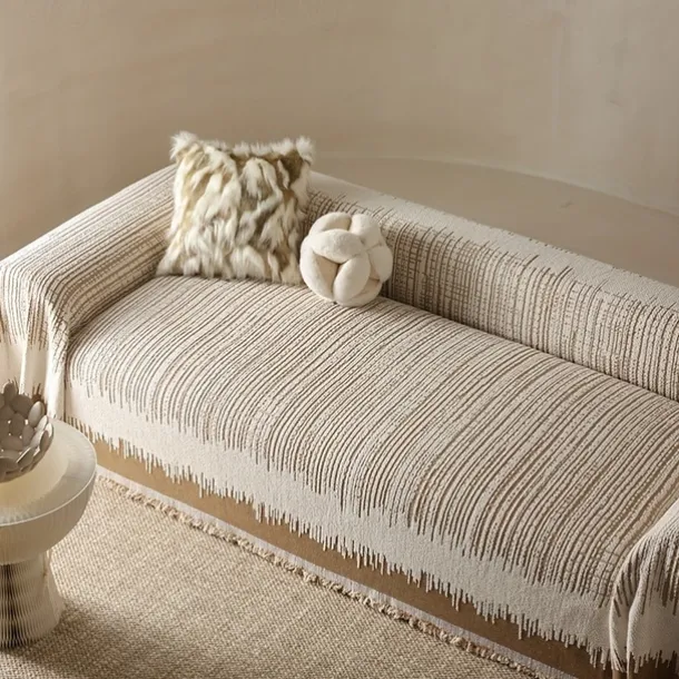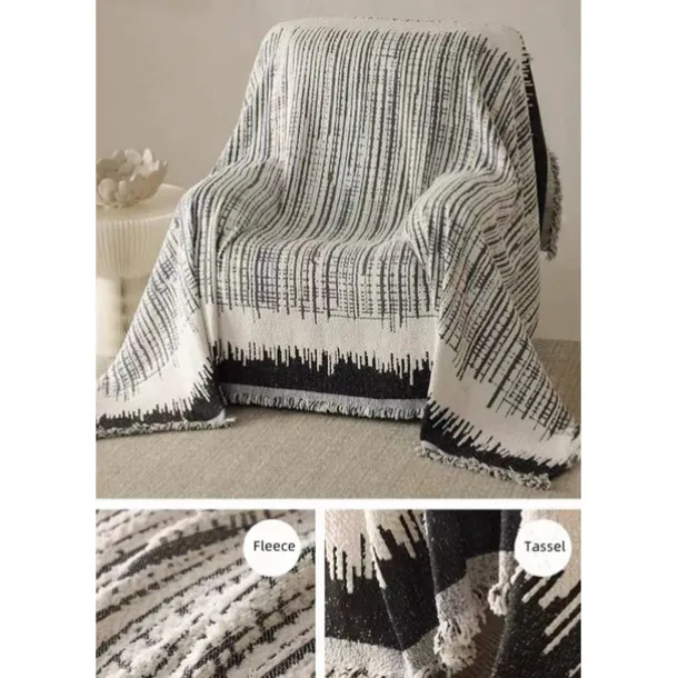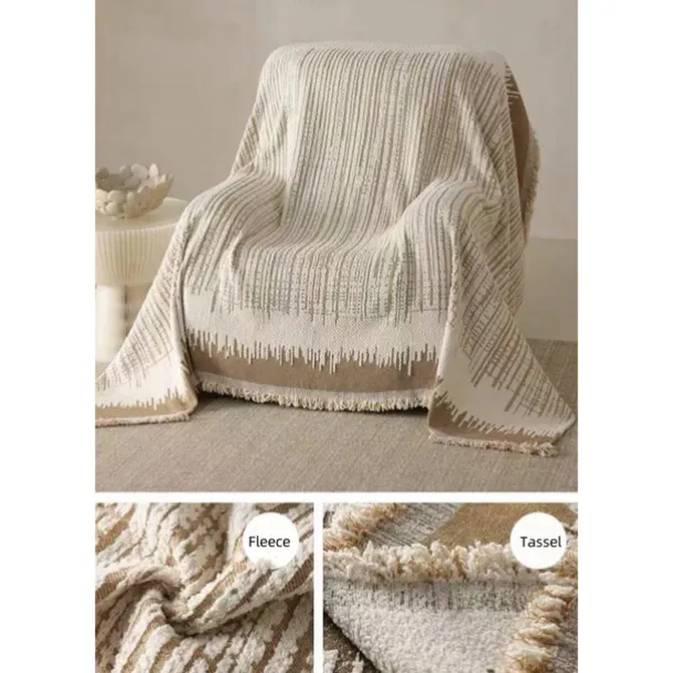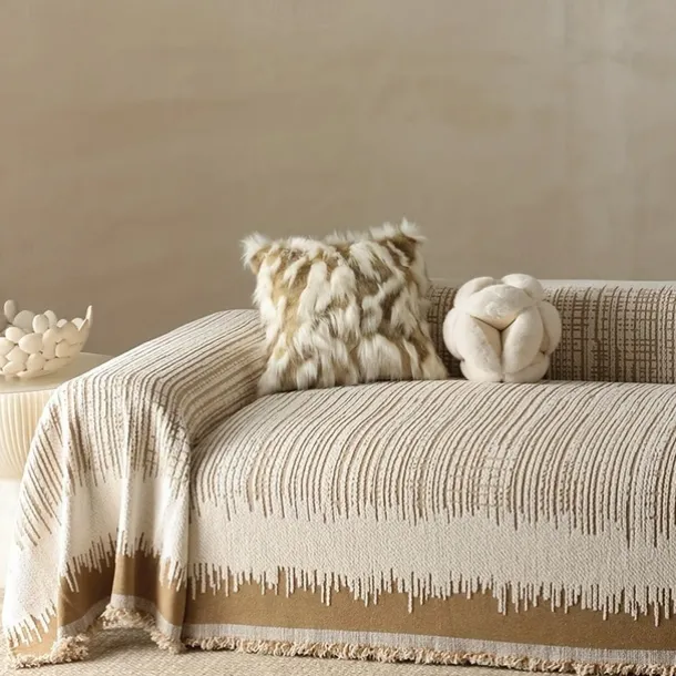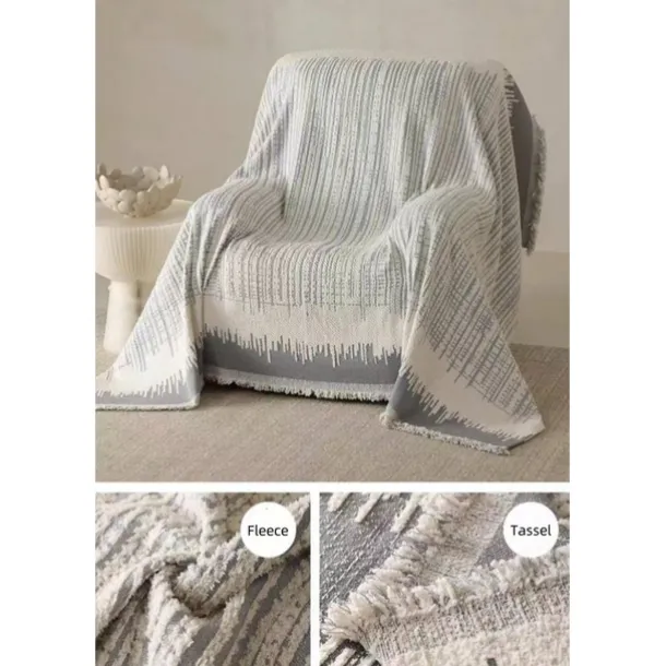 Thickened Sofa Blanket Autumn And Winter Gradient Striped Jacquard Half Velvet Sofa Towel With Tassels Multi-functional Blanket