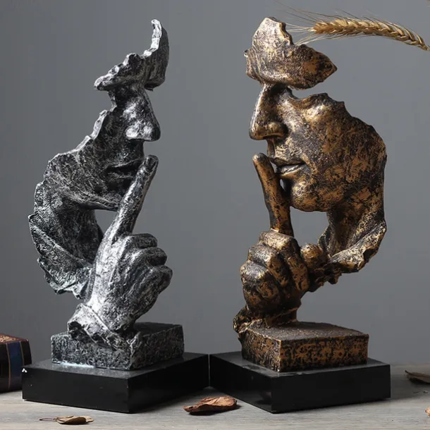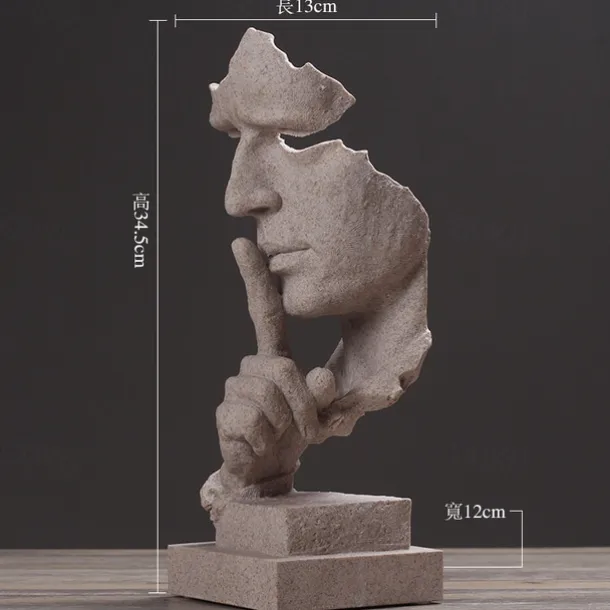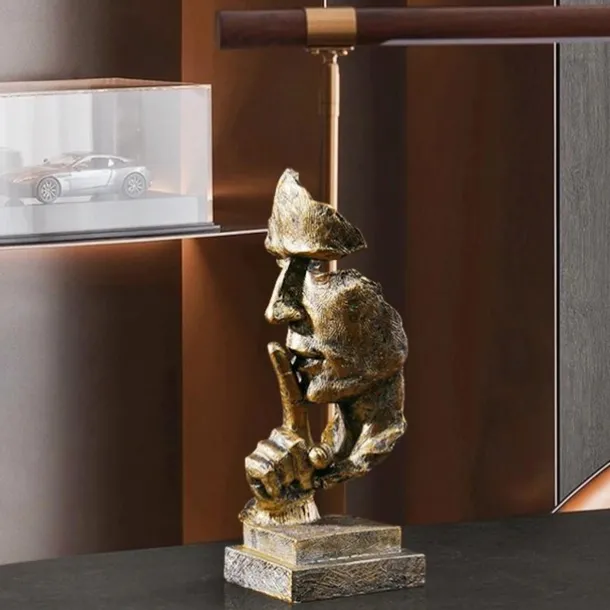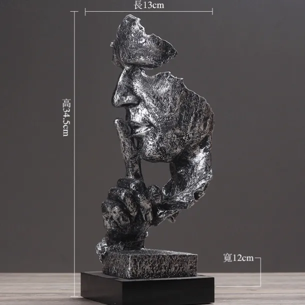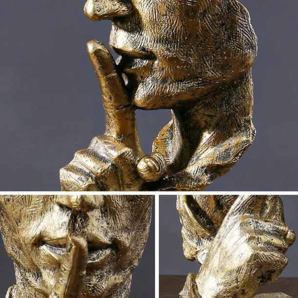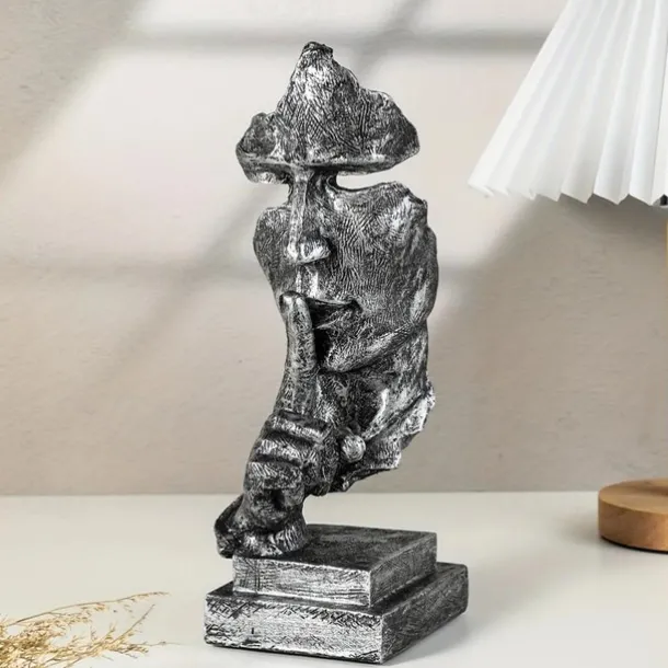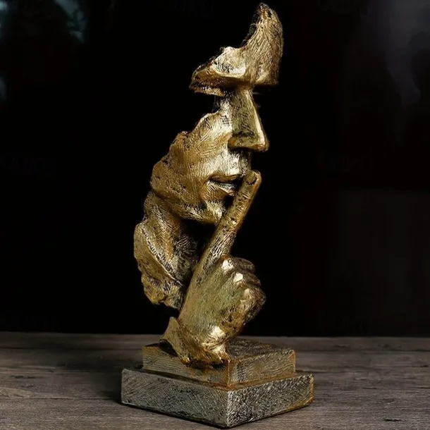 Thinker Statue – Silence is Gold Modern Decor Creative Abstract Art Figurine Resin Sculptures Decoration Room Home Study Office for Men Desktop Ornament