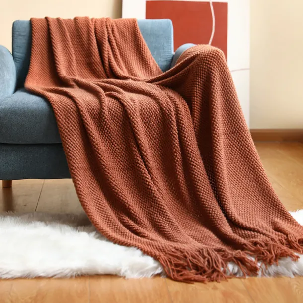 Throw Blanket White for Couch Sofa Chair Bed Knitted Decorative Soft Warm Cozy Light Weight for Spring Summer