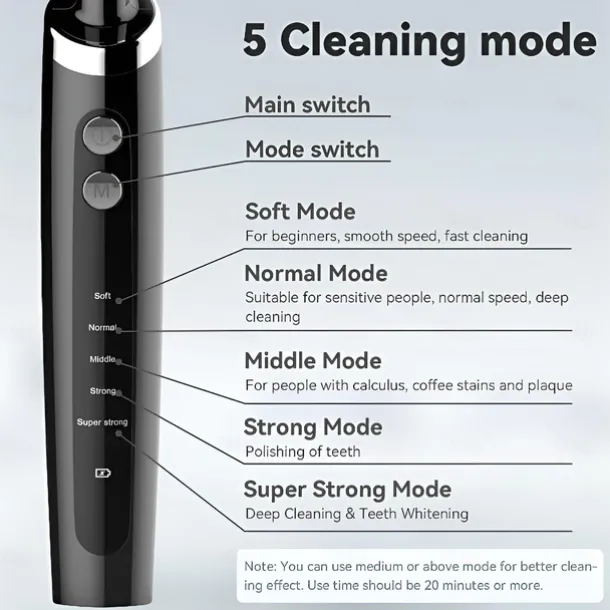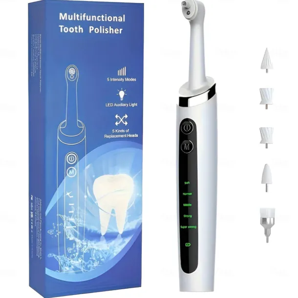 Tooth Polisher Electric Professional with 5 Replacement Heads and 5 Clean Mode USB Charging Waterproof Tooth Polisher Kit