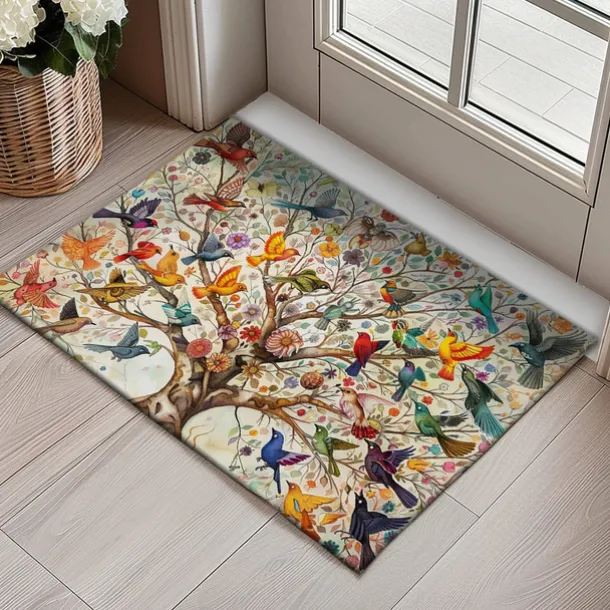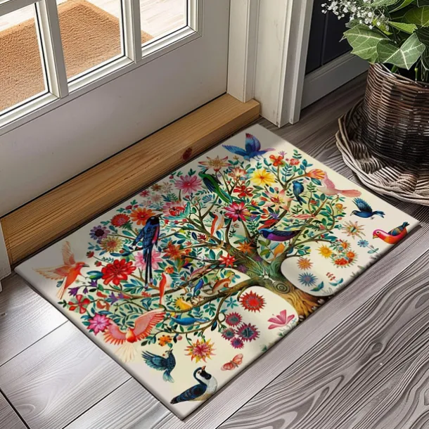 Tree of Life with Birds Doormat Floor Mats Washable Rugs Kitchen Mat Non-Slip Oil Proof Rug Indoor Outdoor Mat Bedroom Decor Bathroom Mat Entrance Rug