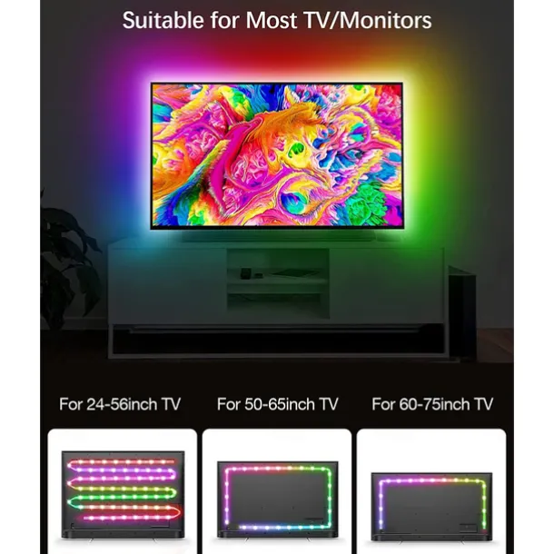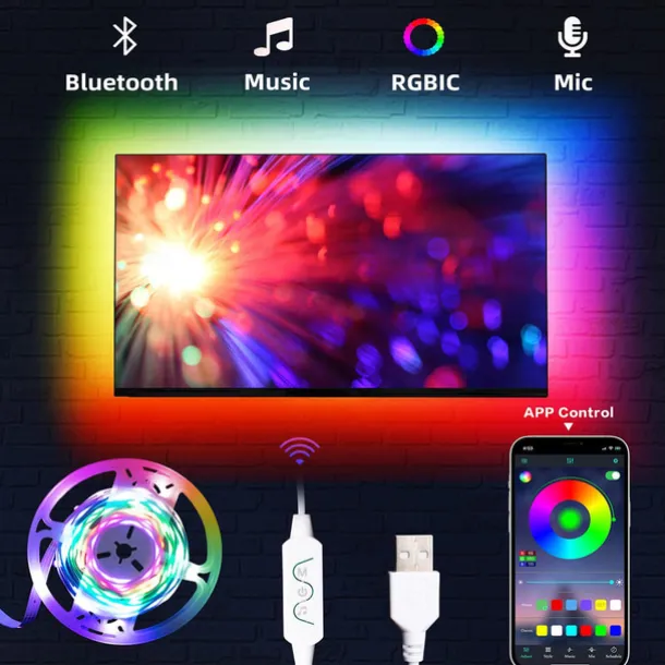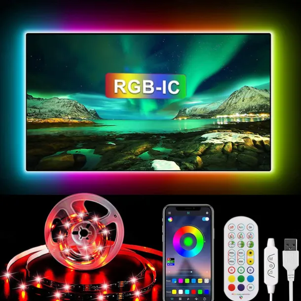 TV LED Backlight Strip RGBIC Programmable Music Synchronization Timing Bluetooth APP Control 2.4G Control 1-5M TV/Monitor Backlight Indoor or Outdoor Activities Festival Decoration USB 5050 Light Strip