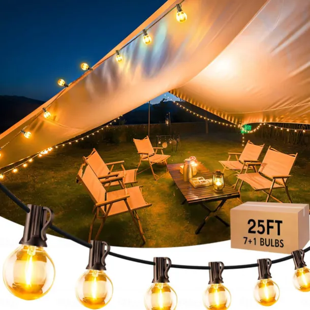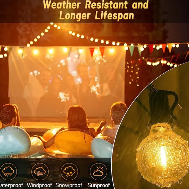 UL Certified Outdoor LED Bulb String Lights 98ft 30m String Lights Outdoor with Shatterproof G40 LED Bulbs Waterproof Hanging Patio Lighting for Christmas Patio House Backyard Balcony Party