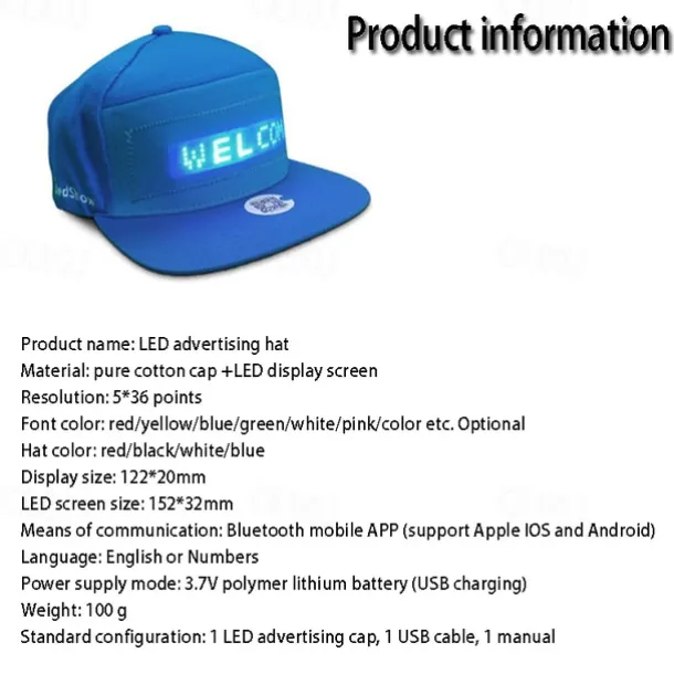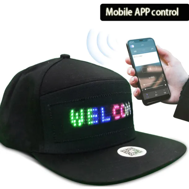Unisex Bluetooth LED Mobile Phone APP Controlled Baseball Hat Scroll Message Display Board Hip Hop Street Snapback Cap