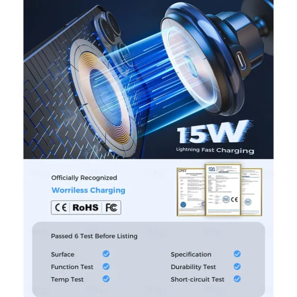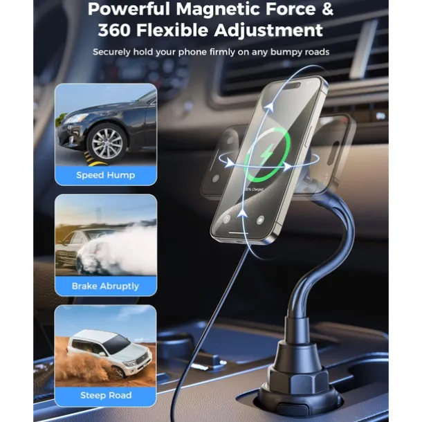 Upgraded for MagSafe Cup Holder Charger, MagSafe Car Mount Charger 15W Fast Charging with Adjustable Gooseneck for iPhone 16 15 14 13 12 Pro Max Plus Mini MagSafe Case