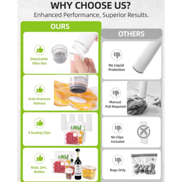 Upgraded Handheld Vacuum Sealer for Food, Portable Vacuum Sealer Machine with Auto-Stop & Detachable Filter, 5X Freshness Lock
