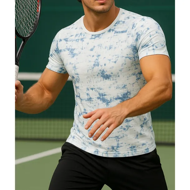 US Open Men’s Tie Dye Sport Shirt Tennis Shirt Tennis Tee Short Sleeves Sweat-Wicking Moisture Wicking Breathable Tennis Golf Pickleball Crew Neck Black White Green Tennis Clothing