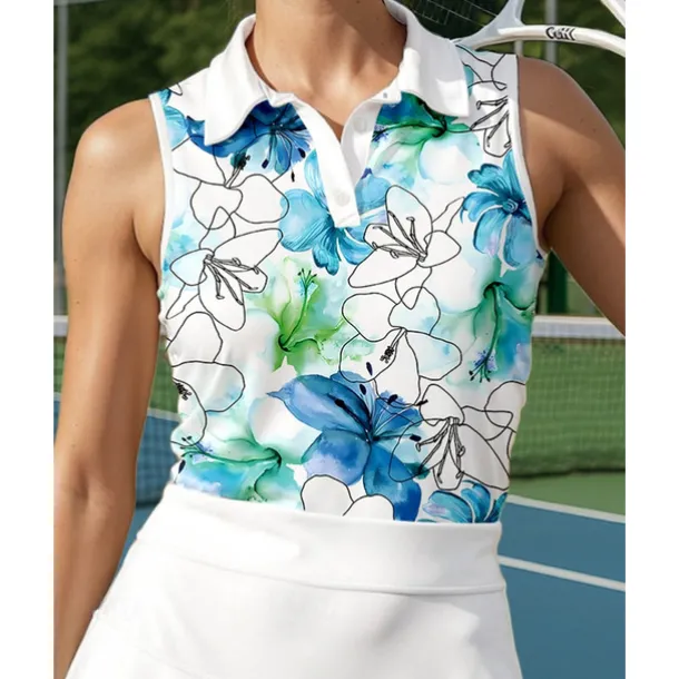 US Open Women’s Floral Sport Shirt Sports Set Tennis Set Tennis Shirt 2 Pieces Sleeveless Print Breathable Tennis Golf Badminton Polo Collar Skirt Blue Tennis Clothing