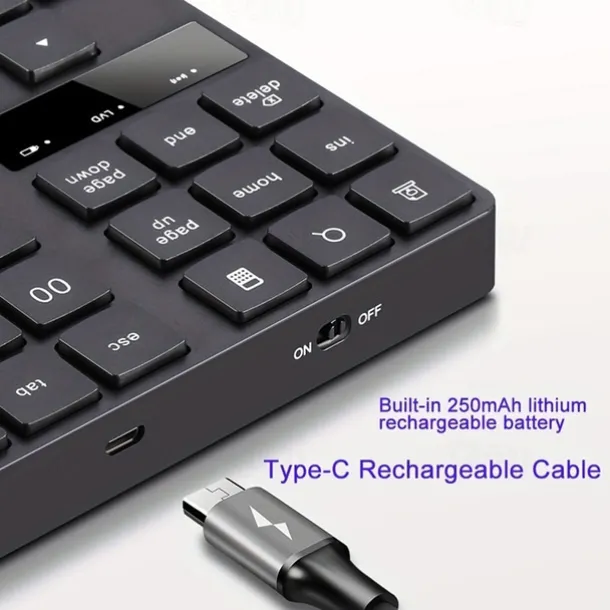 USB 2.4G Wireless Numeric Keyboard 35 Keys Built-in Rechargeable Battery TYPE-C Charging Interface Office Financial Accounting Numeric Keyboard