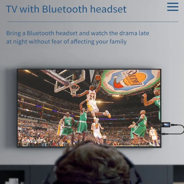 6. Wireless function: Watch late-night sports games without disturbing others. The Bluetooth transmitter function allows you to stream audio wirelessly from your TV or older media devices to Bluetooth speakers or headsets. Perfect for enjoying football, baseball, boxing, golf, and NBA games.