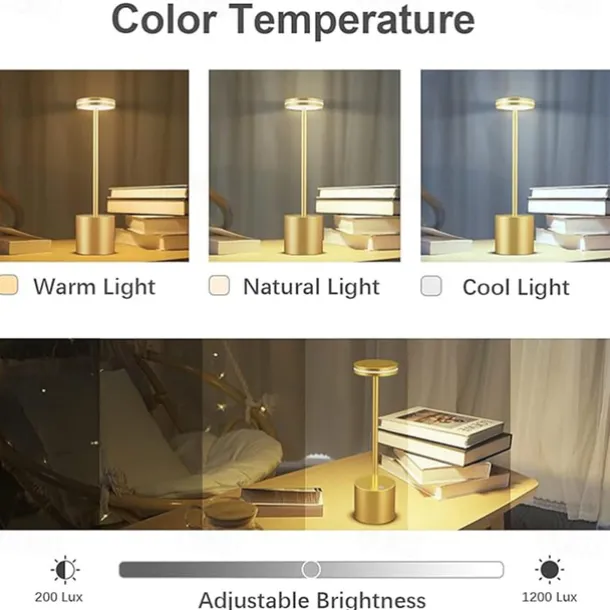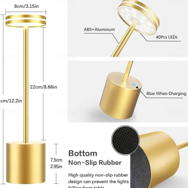 USB Rechargeable Retro Aluminum Desk Lamp – Touch Control Table Night Light 1pc