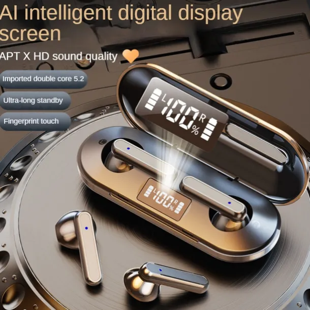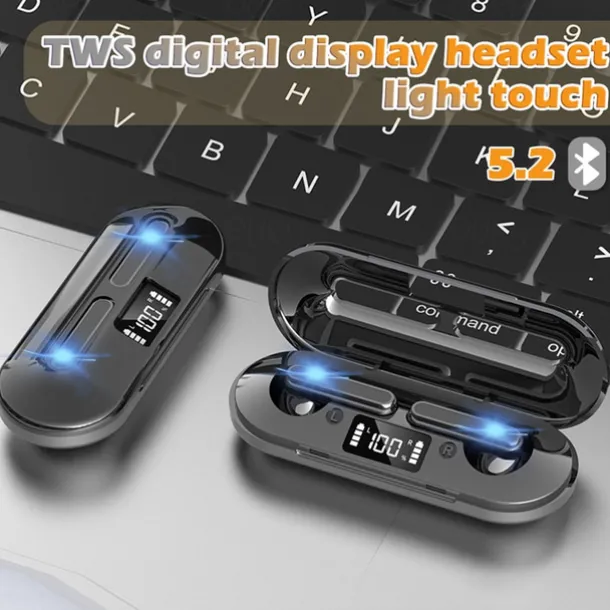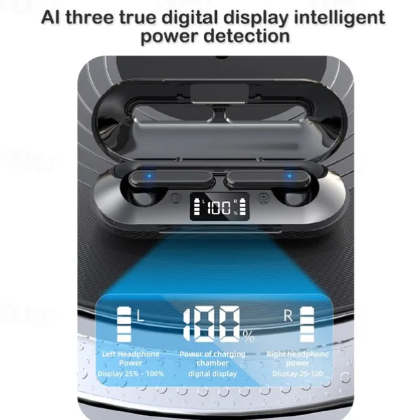 2. Keep an eye on your charging and battery status with ease! The digital display screen on the charging compartment allows you to check the remaining power of the charging bay and headset power at a glance. When the earphone is plugged in, it automatically charges and cuts off when full, thus protecting the battery.