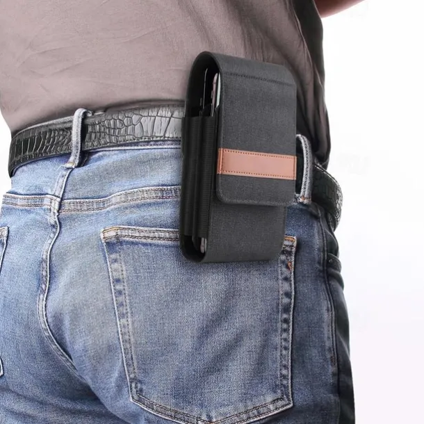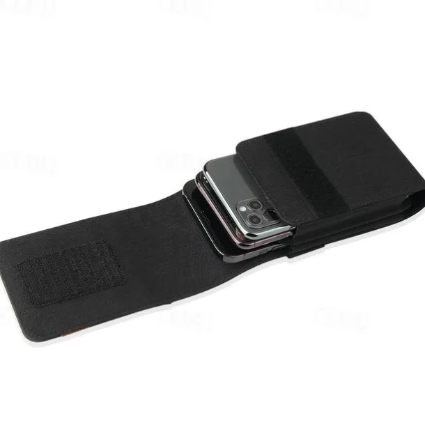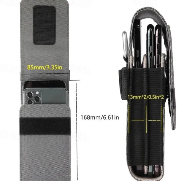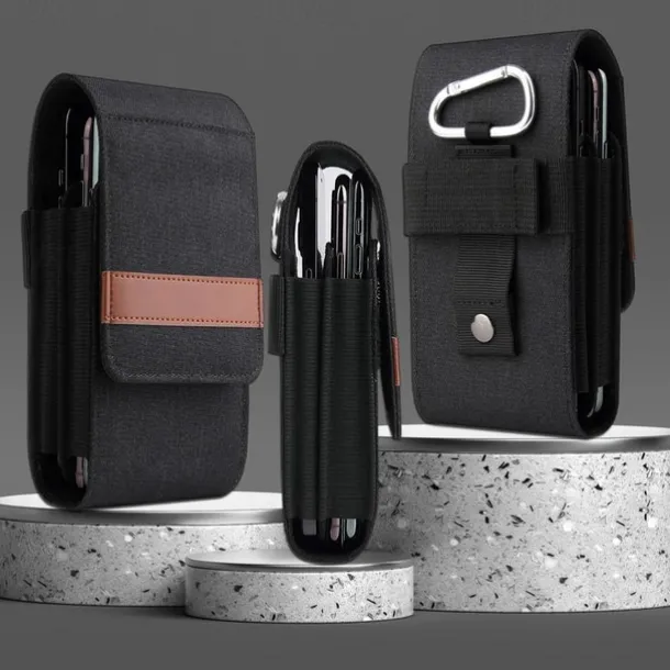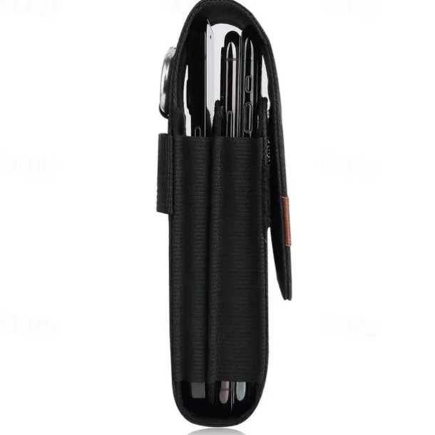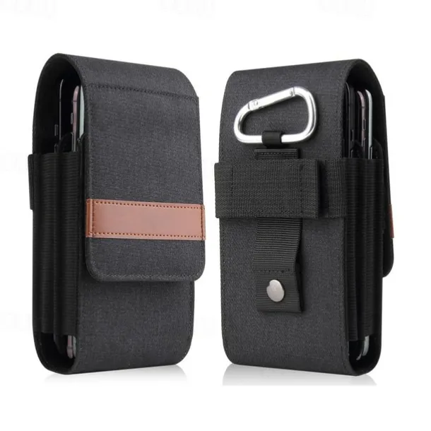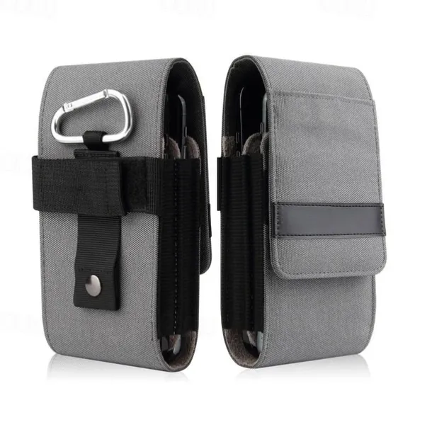 Vertical Nylon Dual Pocket Phone Holster Pouch Belt Clip Case Holder Oxford Cloth Sports Mobile Phone Bag Double Divided Design Power Bank Organizer Earphone Storage Card Storage