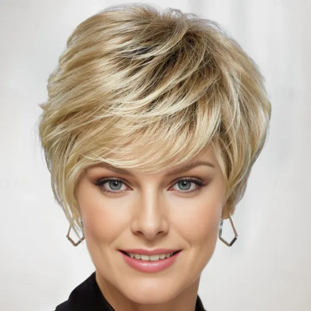 Victoria WhisperLite Wig Edgy Short Pixie Wig with An Asymmetrical Fringe and Rich Feathery Layers / Multi-tonal Shades of Blonde Silver Brown and Red