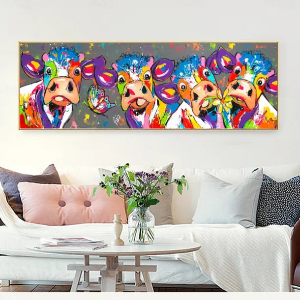 Wall Art Canvas Prints Posters Painting Artwork Picture Abstract Colorful Cattle Animal Modern Home Decoration Décor Rolled Canvas No Frame Unframed Unstretched