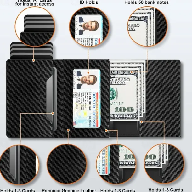 Wallet for Men Credit Card Holder RFID Blocking Pop up Card Case Slim 9-14 Card Capacity ID Window