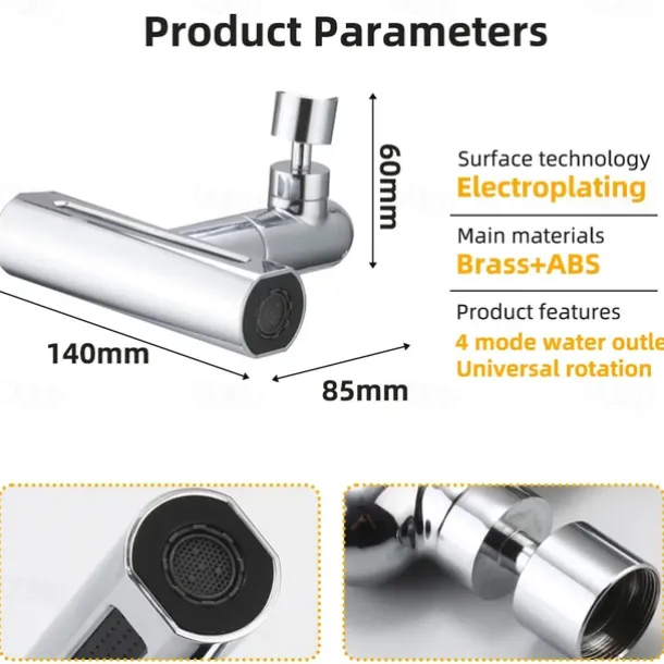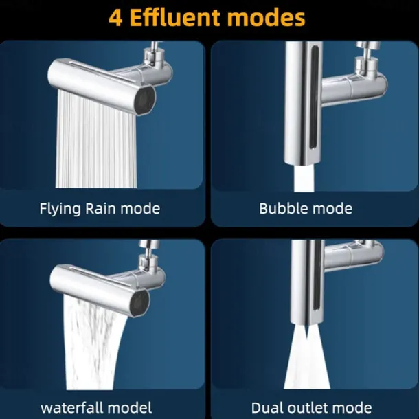 Waterfall Faucet accessory, Waterfall Kitchen Tap Universal Bathroom Kitchen Faucet Multi Function 4 in 1 360 Swiveling Sprayer Head Filter