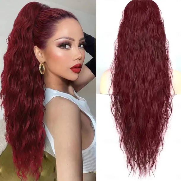 Wavy Curly Ponytail Extension 26 Inch Long Black Drawstring Ponytail Extension for Women Clip in Ponytail Natural Synthetic Hairpiece Thick For Daily Use