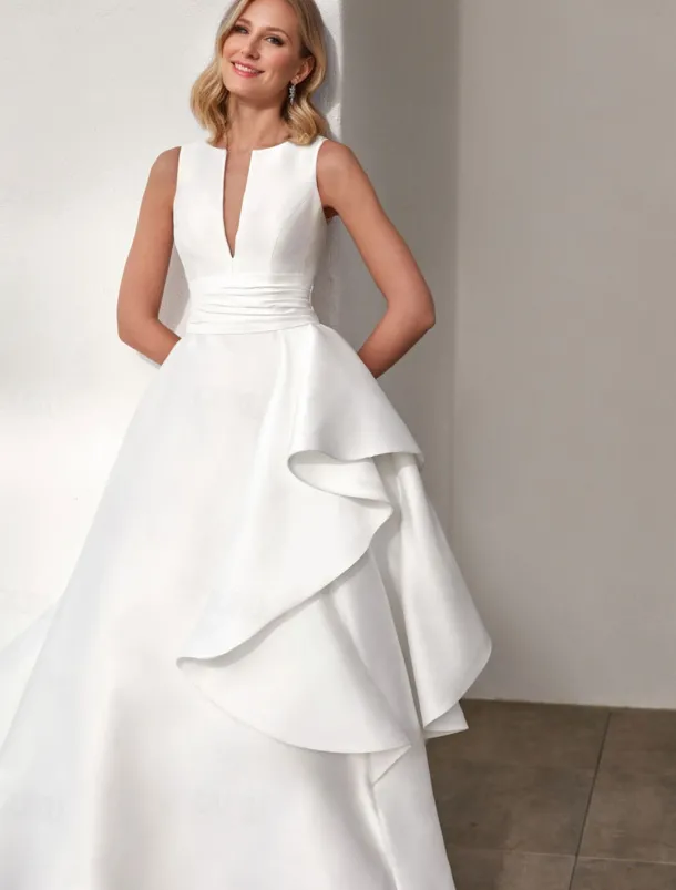 – Eye-catching design elements such as solid colors, ruching, draping, and appliques