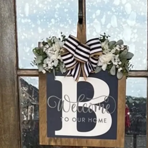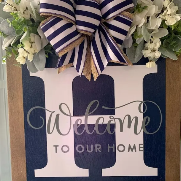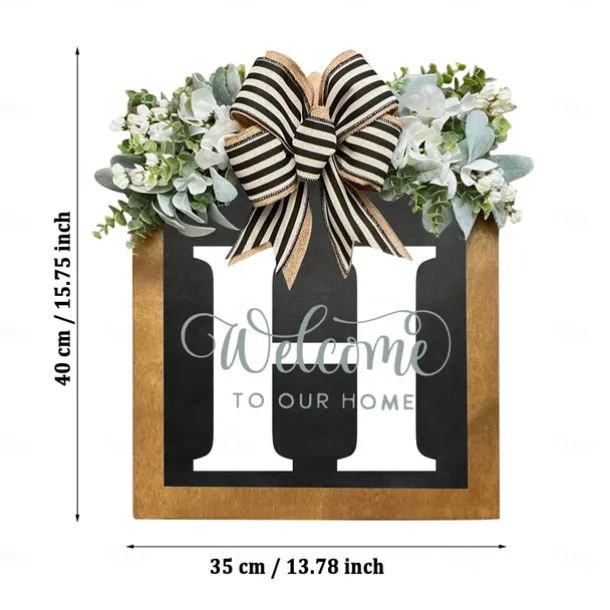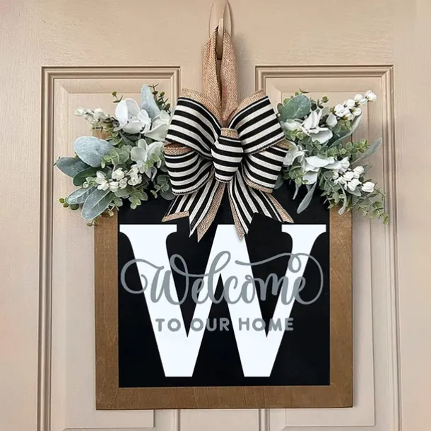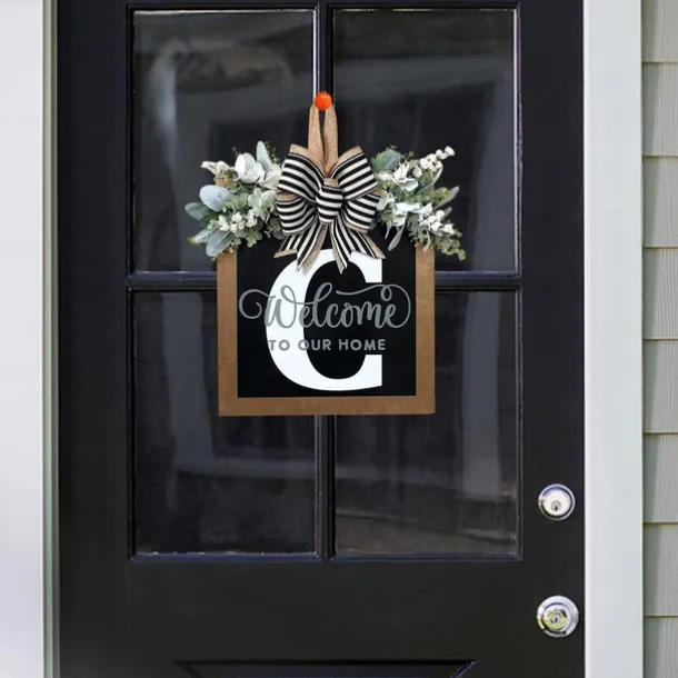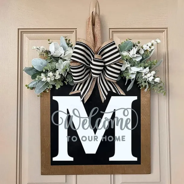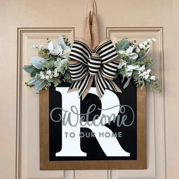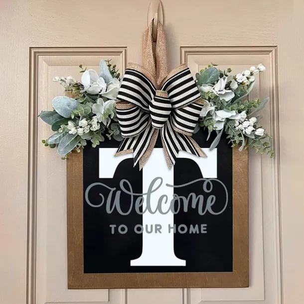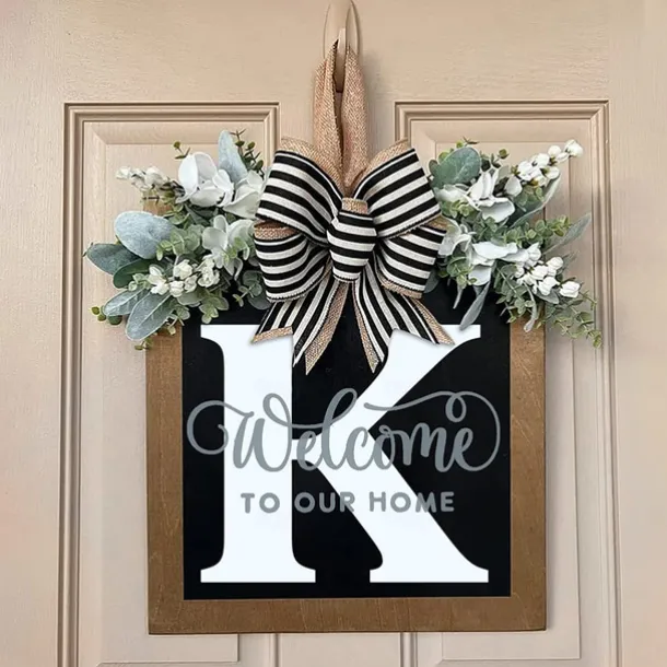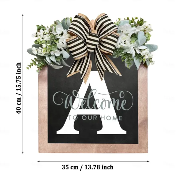 Welcome Signs with Surname for Front Door, Spring Door Wreath with bow, Creative Signs with 26 Letters for Spring Door Decoration