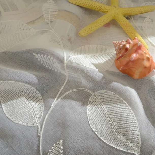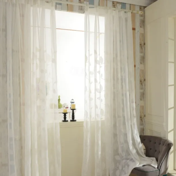 White Sheer Curtains Long Embroidered Semi Transparent Window Screen Leaves Sheer Curtains for Living Room Bedroom