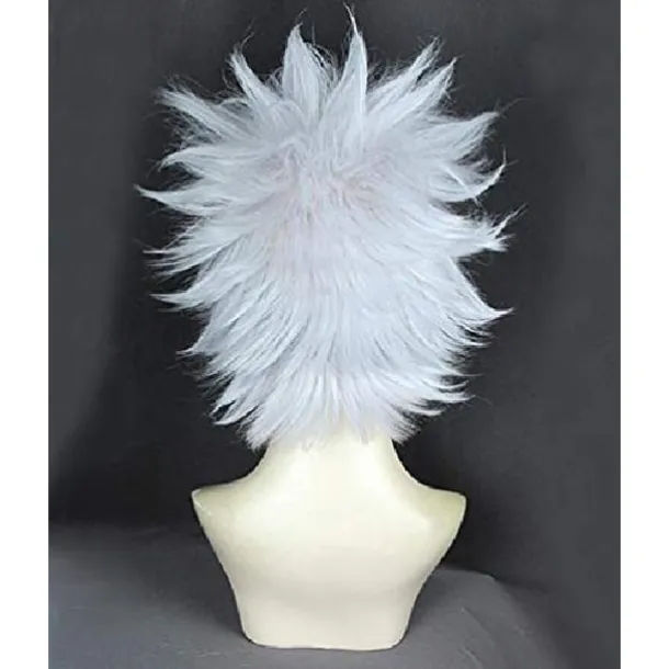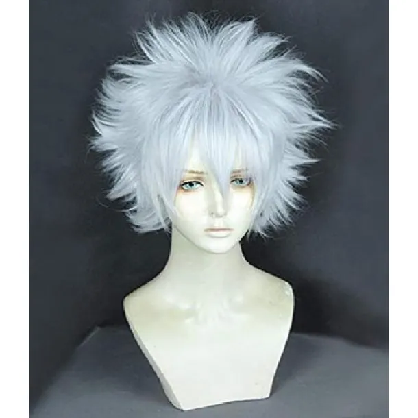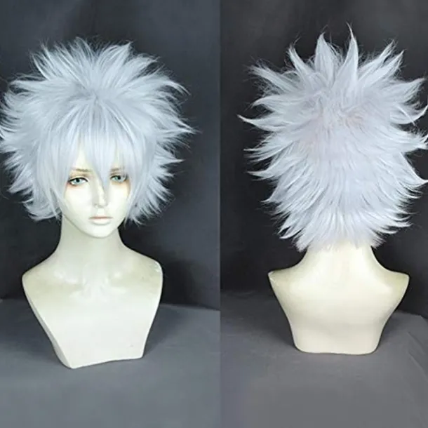 White Wigs for Men Pweincy Killua Cosplay Wig, Short Spiky Layered Silver White Carnival Party Anime Hair