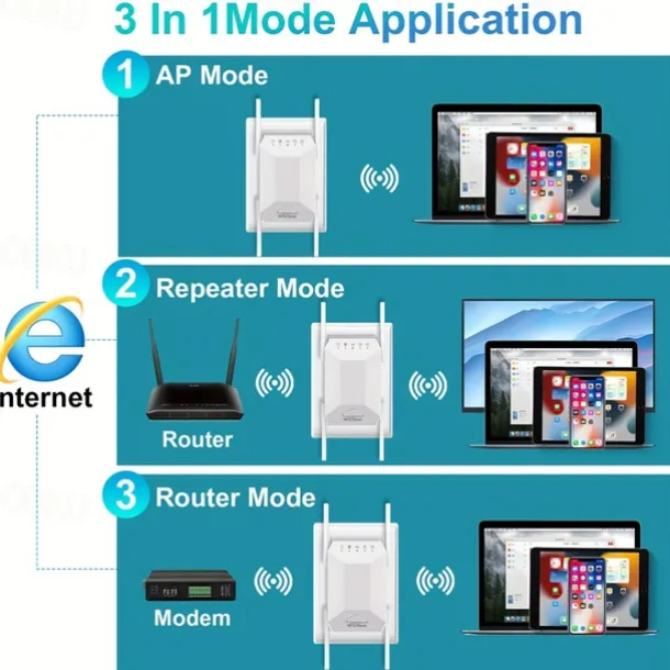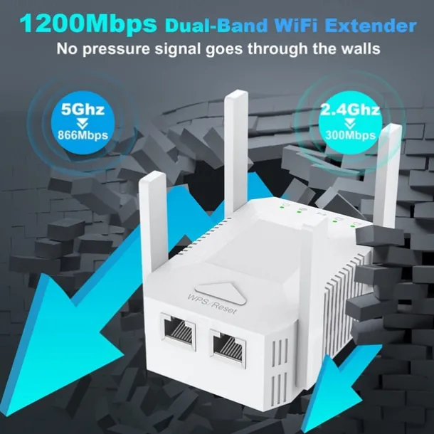 WiFi Extender 1200Mbps 2.4G/5G Dual Band Wireless Internet WiFi Repeater/Router/AP Signal Booster For Home Larger Coverage Extender And Signal Amplifier