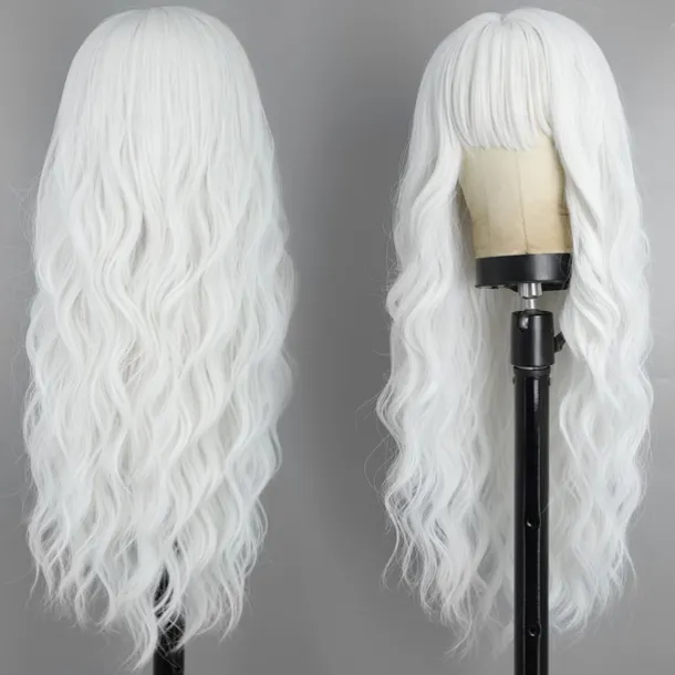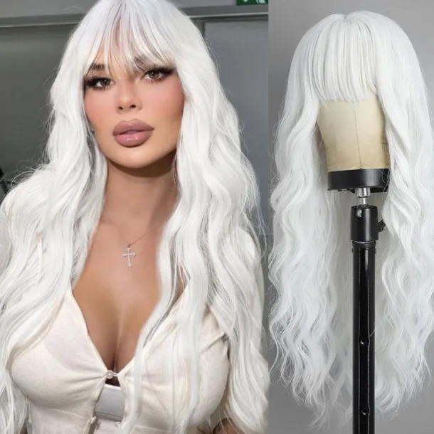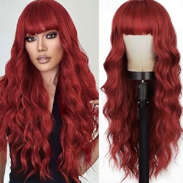 Wig With Bangs Long Wavy Wig For Women Wigs Synthetic Curly wig Natural Looking Heat Resistant Hair For Daily Party Cosplay Use 26 Inches Halloween Wigs