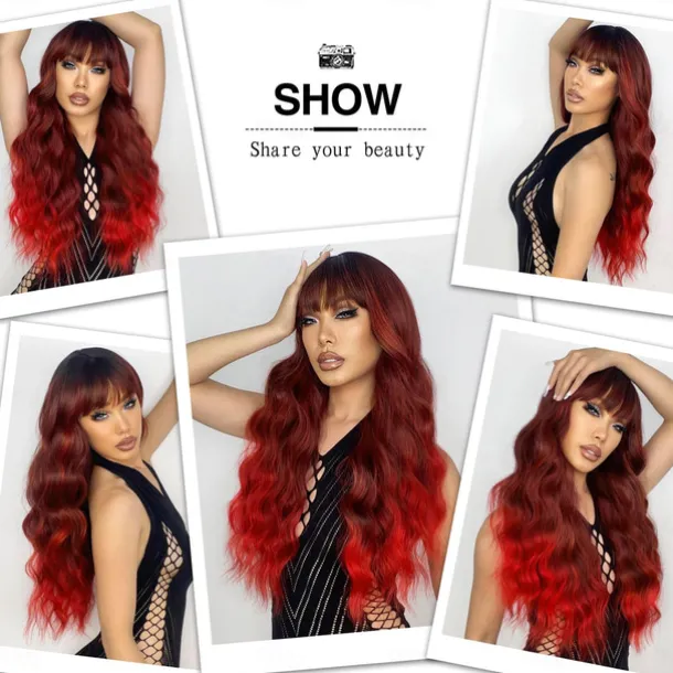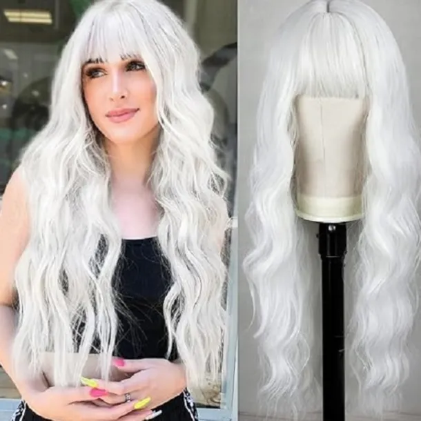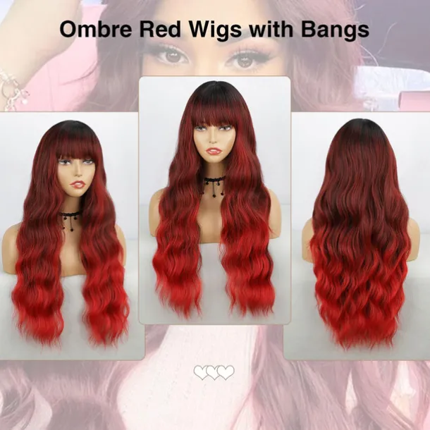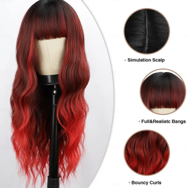 Wigs with Bangs Long Wavy Wig for Women Wigs with Bangs Synthetic Heat Resistant Fiber Wigs Halloween Cosplay Party Wigs